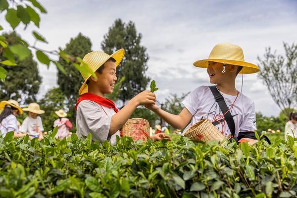2025年4月27日,蒲江蚕虫路小学同学在老师们的带领下,在成都市蒲江县成佳镇佳阳研学基地进行采茶体验。