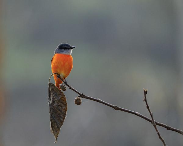 单说明 | 2025年2月6日,在海南热带雨林国家公园尖峰岭景区拍摄到灰喉山椒鸟(红色)与赤红山椒鸟(雌鸟,黄色)。 |