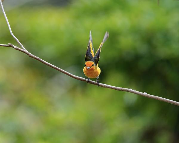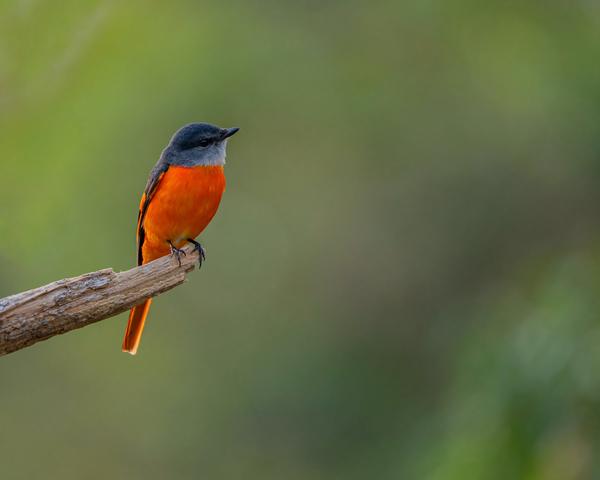 总说明 | 2025年2月6日,在海南热带雨林国家公园尖峰岭景区拍摄到灰喉山椒鸟(红色)与赤红山椒鸟(雌鸟,黄色)。 |