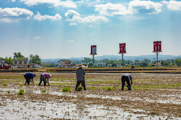 单说明 | 2025年5月25日,天气晴好,烈日下广汉市连山镇五一村农事忙碌,人工和机械化作业共同耕耘着这一广阔天地。图为农民们正在插秧。 |