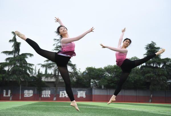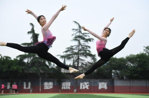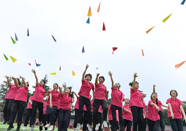 单说明 | 2025年6月3日,四川省成都艺体中学高三学生通过凌空跃减压迎高考。 |