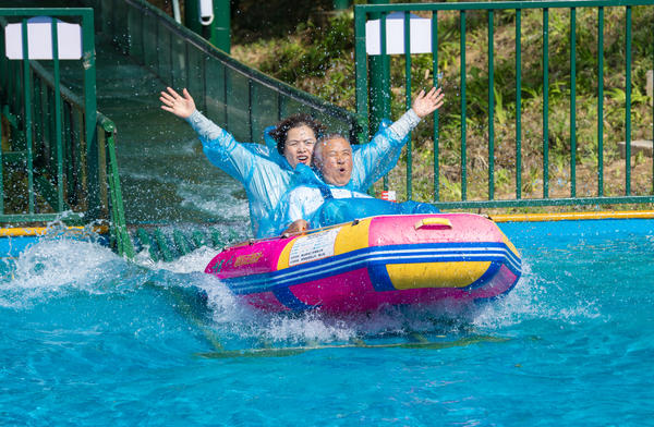 单说明 | 游客在体验水滑道。 |