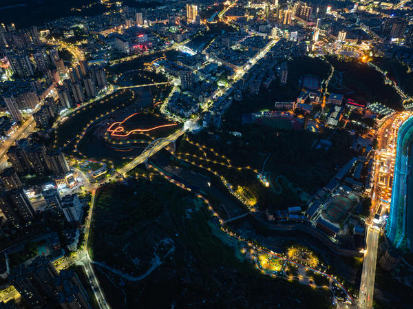 单说明 | 2025年7月1日,航拍夜色中的广安西溪峡公园。 |