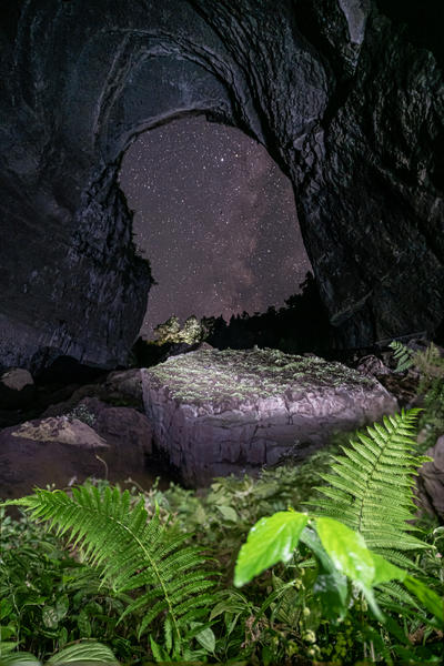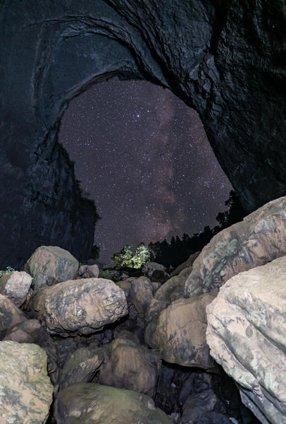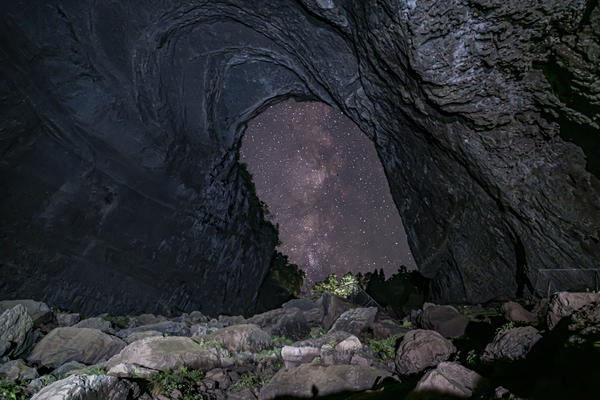2025年6月30日夜,天空无比晴朗,乐山市沙湾区硝斗岩景区,从硝洞望向星空。