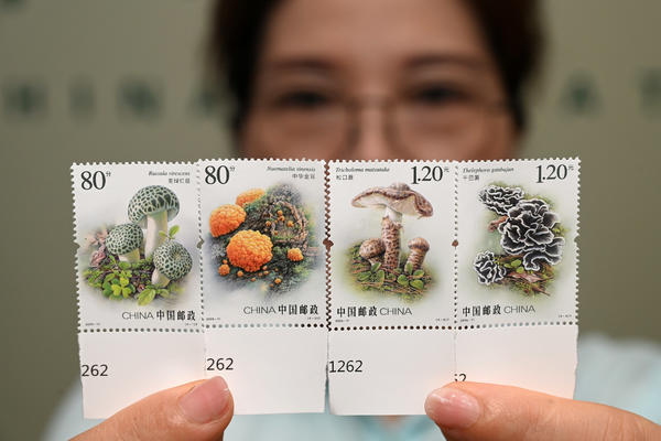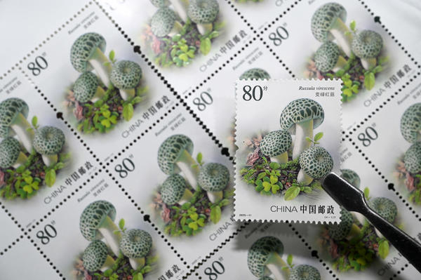 单说明 | 2025年7月12日,在中国邮政集团有限公司内江市东兴区分公司,工作人员在展示《食用菌(二)》特种邮票。 |