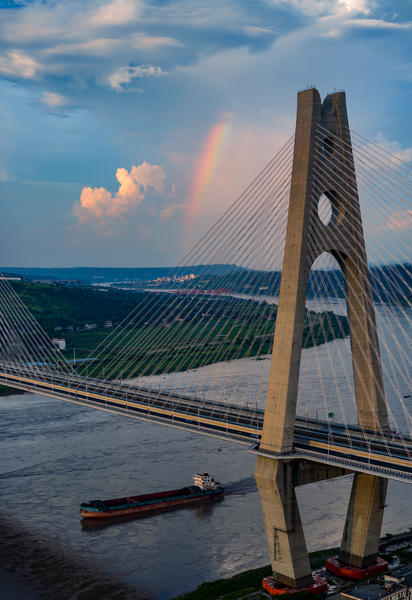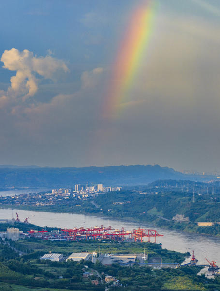 总说明 | 2025年7月22日傍晚,长江上晚霞漫天,宜宾临港长江公铁大桥、宜宾港的上空出现了美丽的彩虹。 |