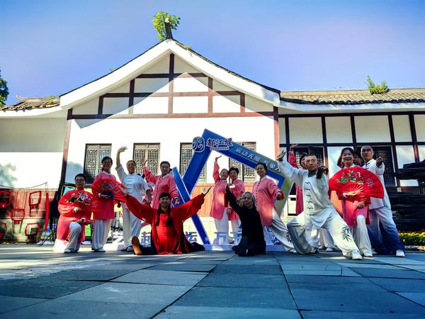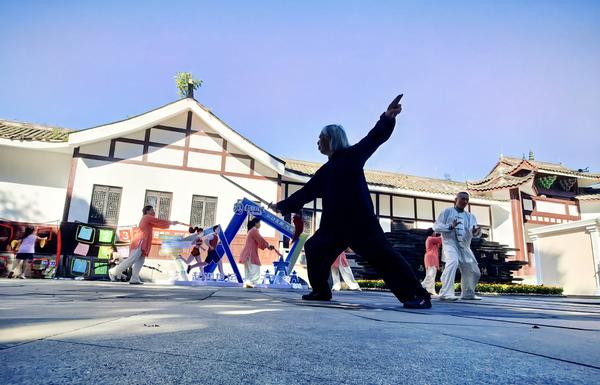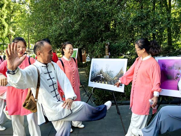 单说明 | 太极爱好者在表演太极拳运动。 |