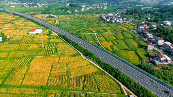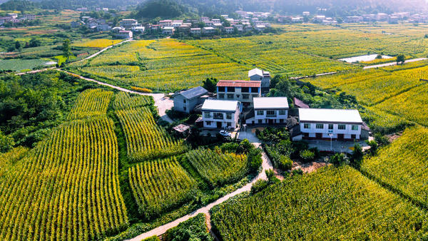 总说明 | 2025年8月1日,资阳市安岳县岳阳镇柳溪村,1200余亩连片玉米迎来成熟期,沉甸甸的玉米穗压弯枝秆,阡陌纵横的金黄色玉米田在太阳映照下泛着金色光泽,一派丰收在望的喜人景象,为乡村田园披上了一层丰收的盛装。 |
