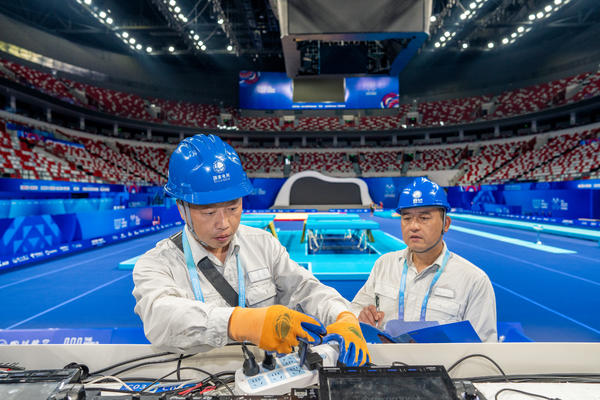 总说明 | 2025年8月4日晚,在成都市龙泉驿区东安湖体育公园多功能体育馆,国网四川省电力公司电力保障人员对场馆内用电设备开展特殊巡视,为成都世运顺利举办筑牢电力保障防线。 |