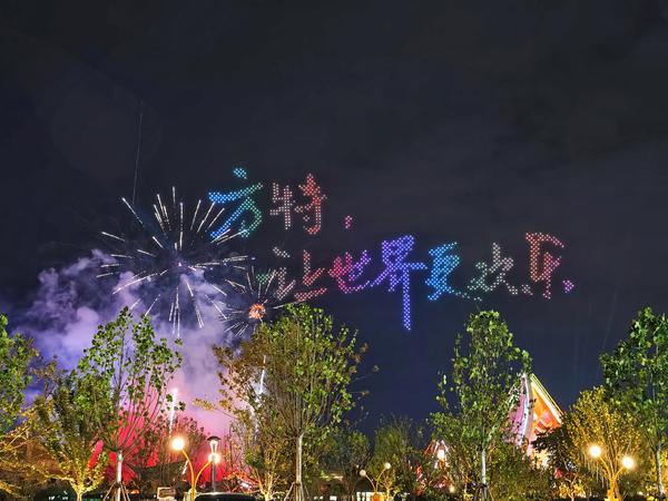 2025年8月10日晚,资阳方特国色春秋上空的烟花及无人机秀。该项目8月8日开业即火爆出圈,为资阳捧出文旅新山河。