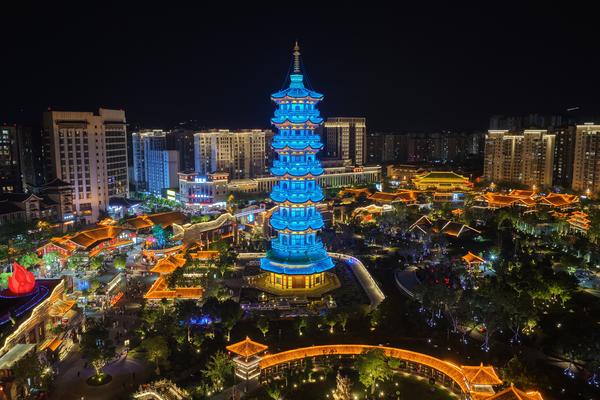总说明 | 2025年8月10日,西昌唐园夜景璀璨。仿古建筑群在灯光勾勒下尽显古韵,塔楼飞檐斗拱被暖光点亮,与周边现代建筑相映成趣,勾勒出一幅古今交融的都市夜画 。 |