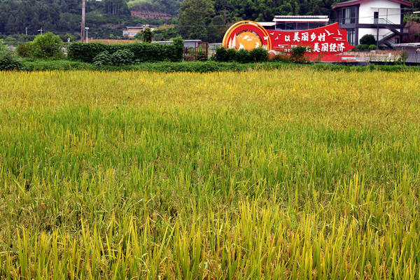 单说明 | 2025年9月4日,近百亩“稻鳖共养”水稻田里挂满沉甸甸的稻穗。 |