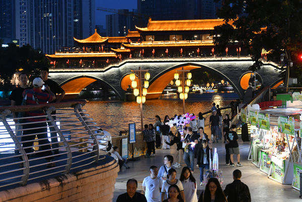 总说明 | 10 月 1 日晚,成都锦江两岸灯火璀璨,“迎国庆 奏华章” 、“非遗有戏” 两大精品展演活动同步在合江亭音乐广场温情上演,为市民与游客献上了一场兼具节日氛围与文化底蕴的国庆盛宴。与此同时,在东门码头,载满游客的游船缓缓启航。游客们凭栏而坐,欣赏着两岸流光溢彩的城市夜景 。国庆庆典与非遗文化、城市景观深度融合,既让市民游客在沉浸式体验中欢度佳节,也为成都非遗的活态传承搭建了优质平台,进一步彰显了成都作为历史文化名城的独特魅力与文化自信。 |