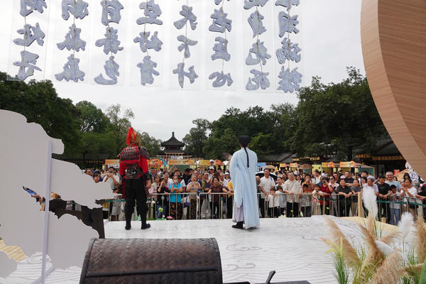 2025年10月3日,成都武侯祠博物馆西区。国庆中秋双节长假期间,在这里举办的“幻游三国”演出吸引了众多的游客驻足观看。