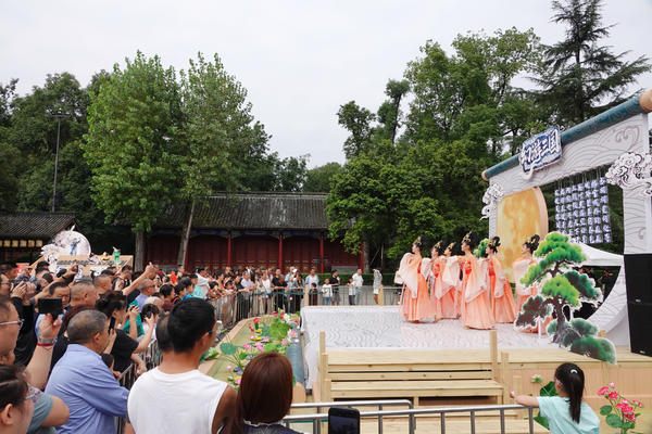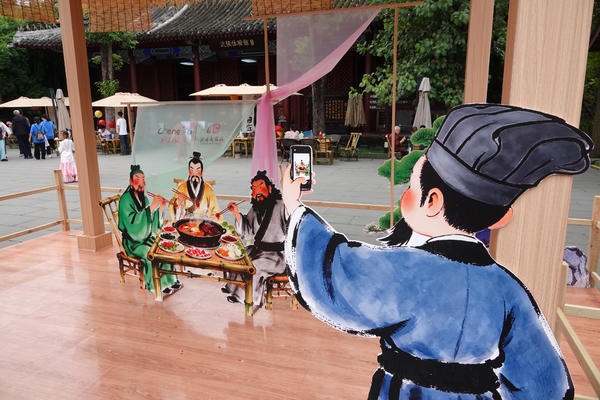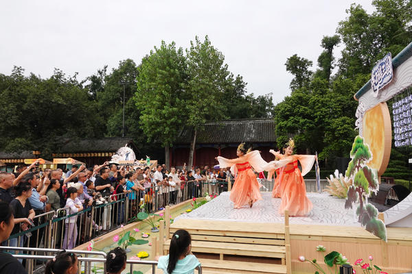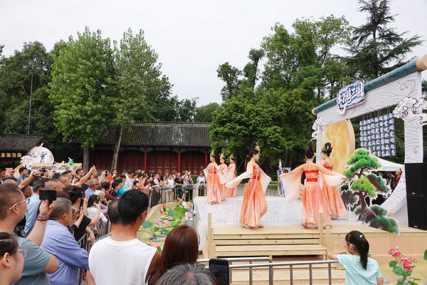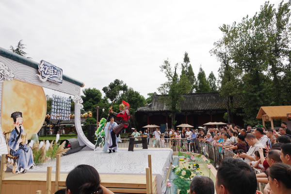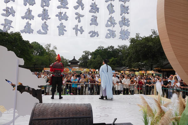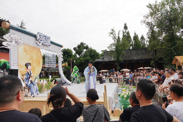 2025年10月3日,成都武侯祠博物馆西区。国庆中秋双节长假期间,在这里举办的“幻游三国”演出吸引了众多的游客驻足观看。