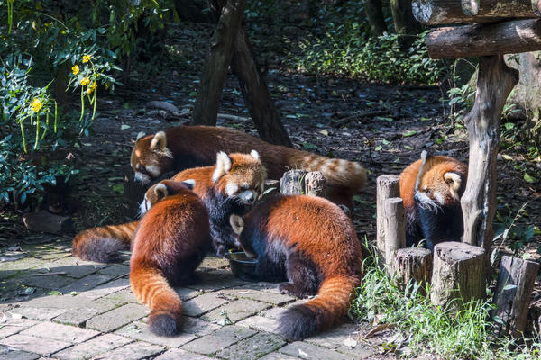 总说明 | 2025年10月2日,雨后天晴,阳光明媚,成都大熊猫繁育研究基地的小熊猫们,以它们那金红色毛茸茸活泼可爱的身影,拖着蓬松的大尾巴,在秋日阳光的映照下,正津津有味地吃着美味的午餐,吸引着无数游客前往观赏拍照。 |