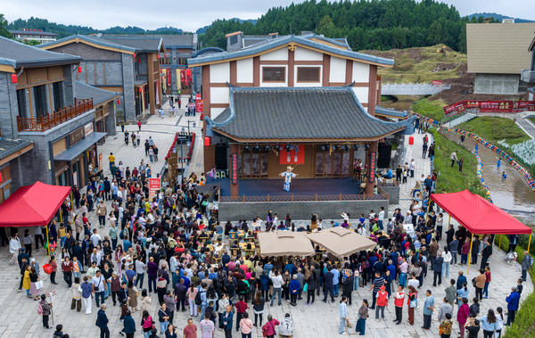 单说明 | 2025年10月6日,资阳市乐至县陈毅故里景区真红巷文旅街区人来人往,锣鼓阵阵,一群年轻川剧爱好者在此表演经典传统川剧,好戏连台,赢得广大游客驻足欣赏。 |
