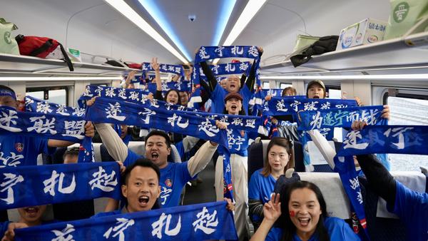 总说明 | “遂宁,雄起!”10月19日中午,遂宁火车站喊声阵阵,约1100余名球迷整队集合,有序搭乘球迷专列前往达州,为遂宁队加油助威。 19日晚7点35分,2025/2026“川超”联赛川东赛区第五轮遂宁队客场对阵达州队的比赛,将在达州市体育中心开战。为保障众多远征球迷顺利出行,铁路部门特别加开19日往返遂宁与达州间的一趟球迷专列。 |