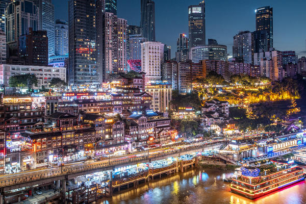重庆市渝中区:洪崖洞灯火璀璨夜色美