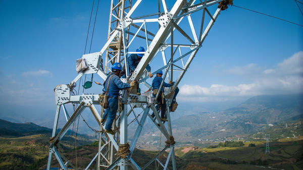 标题 | 凉山普格县:建昌换流站(500千伏变电站)220千伏配套工程组塔施工作业 |