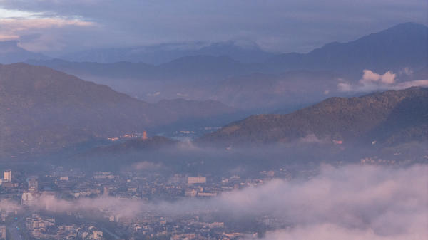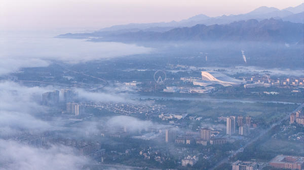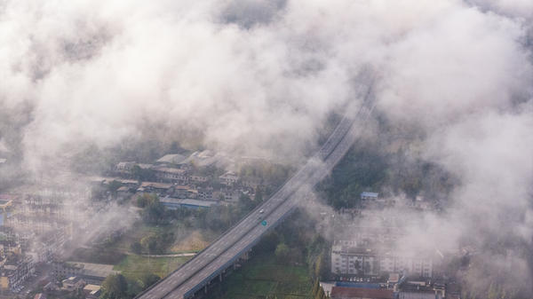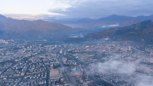 标题 | 成都都江堰市:雾绕城市如仙境 |