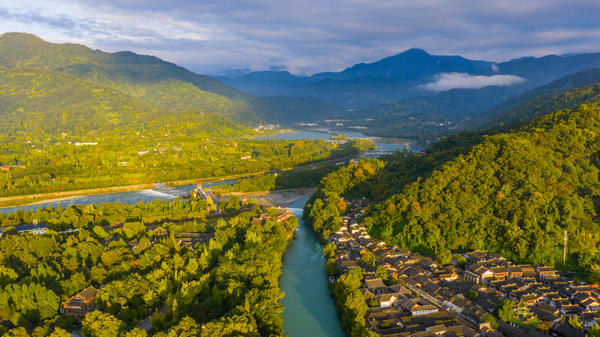 总说明 | 2025年10月27日,昨夜一场秋雨后,都江堰市上空云雾缭绕,仿佛为这座城市披上薄纱,如诗如画。雾散后,都江堰景区被秋日暖阳照耀,更为迷人。 |