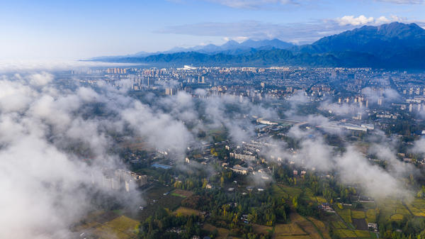 单说明 | 2025年10月27日,昨夜一场秋雨后,都江堰市上空云雾缭绕,仿佛为这座城市披上薄纱,如诗如画。 |