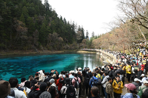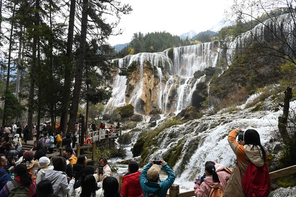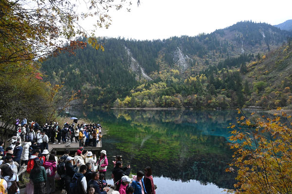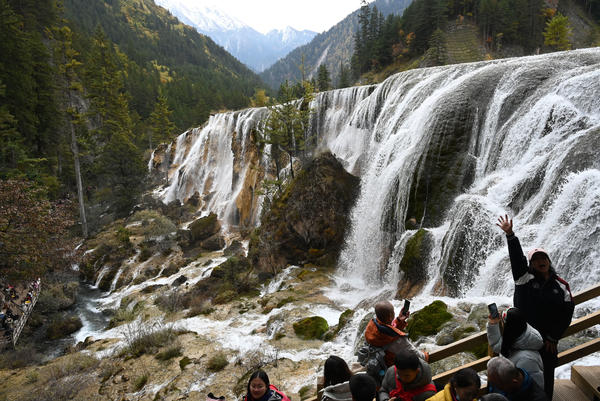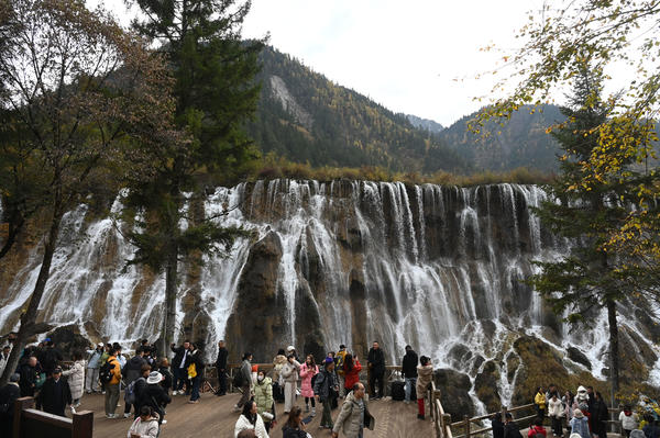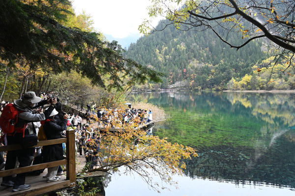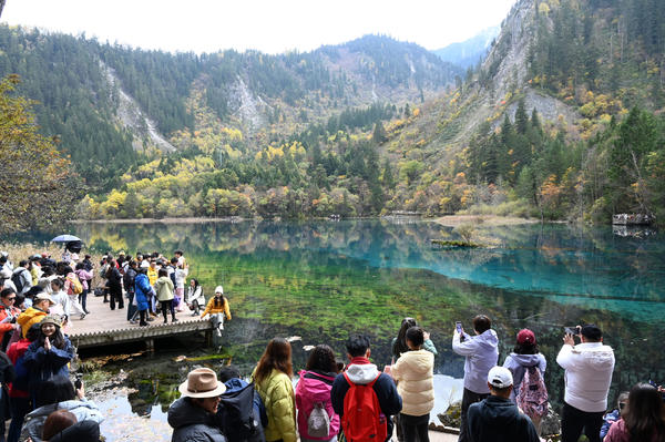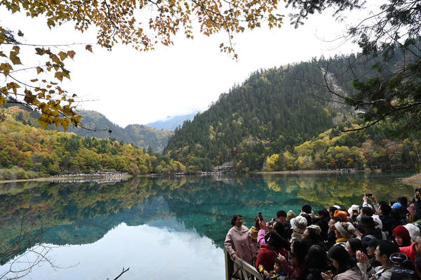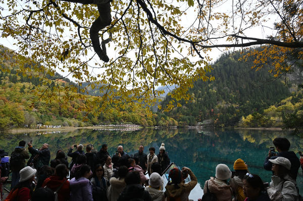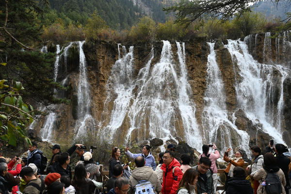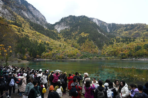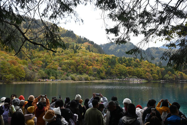 单说明 | 2025年11月1日,阿坝藏族羌族自治州九寨沟县,游客在九寨沟风景区游玩。 |