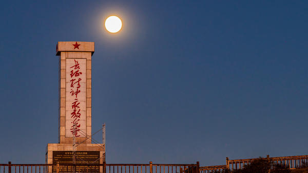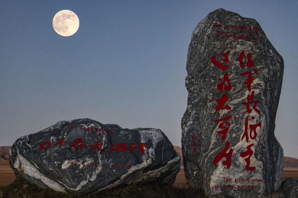 2025年11月5日,四川省阿坝州红原县瓦切日干乔红军长征过草地纪念地,月色皎洁。