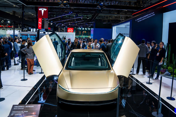 单说明 | 2025年11月6日,第八届中国国际进口博览会进入第二天,在汽车及智慧出行展区,特斯拉展台被拉起了隔离带,限流进入。此次特斯拉带着特斯拉赛博无人驾驶电动车进行亚太地区首展。 |