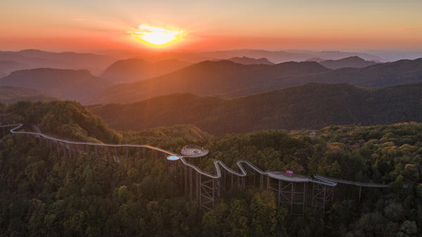 单说明 | 2025年11月18日,C视觉“旅拍宣汉”摄影师们在月亮坪巴山之月观景台邂逅一场绚丽的日落,夕阳把余晖毫不吝啬的洒在层林里,漫山的彩林便成了打翻的调色盘。枫红似燃着的霞,橡黄如熔金在山林流淌。 |
