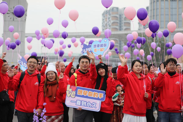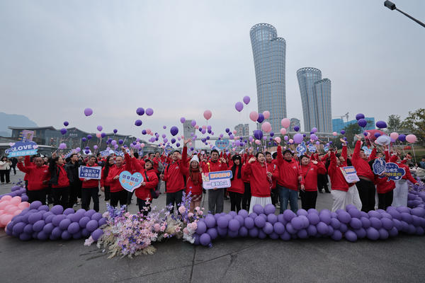 单说明 | 2025年11月22日,在位于四川省宜宾市高铁南片区的宜宾万象天地,恋人们放飞爱情气球。 |