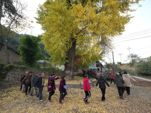 总说明 | 2025年11月28日下午,在阆中市思依镇北门社区,当地村民在千年古银杏树下开展川剧座唱、红歌联唱等文娱节目表演。这株高约25米,需要6个人合围怀抱的古银杏树,树龄近千年,是目前古蜀道上树龄最大的一株古银杏树,每当进入11月份,这株银杏树便一片金黄,成为当地标志性风景,吸引众多游客和市民前往打卡拍照,感受古蜀道上古树的文化魅力。 |