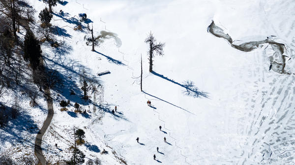 总说明 | 2025年11月28日,阿坝理县毕棚沟前几日大雪,温度急降,磐羊湖、月亮湖均已结成厚厚的冰,冰湖与雪山相映,别有一番韵味,引得众多游客前来打卡。 |