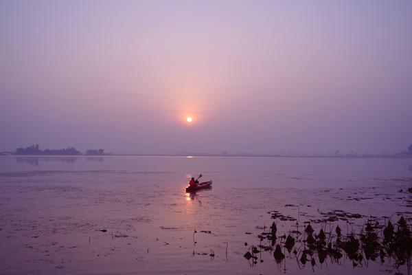 日出时分的三星湖