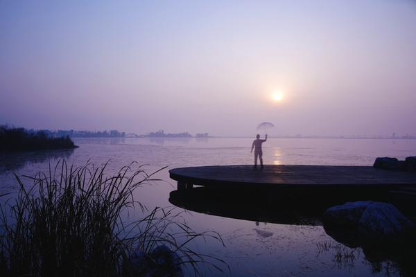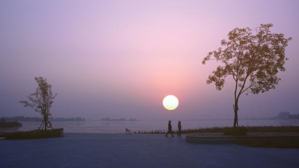 德阳广汉市:日出时分的三星湖
