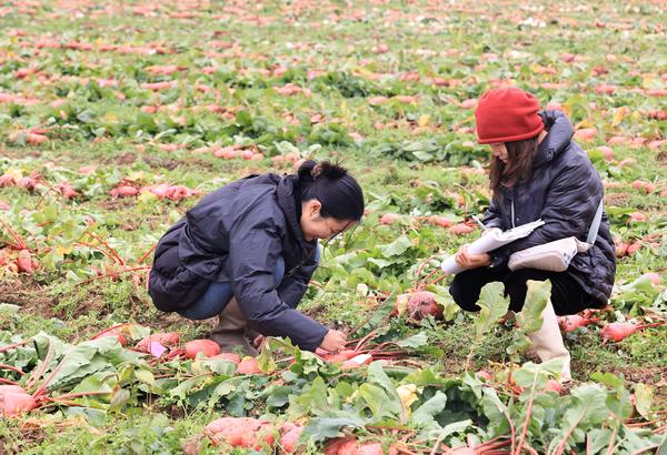 单说明 | 科研人员在开展萝卜材料选育作业。 |