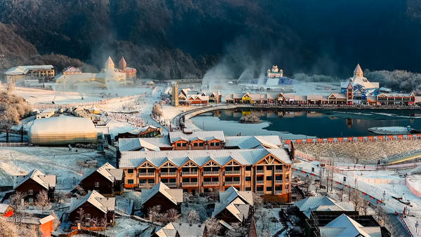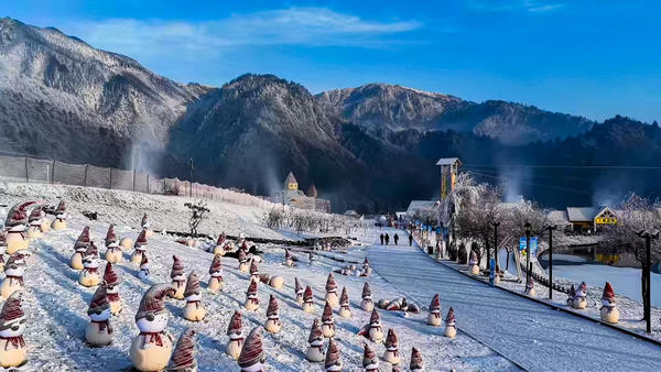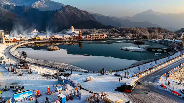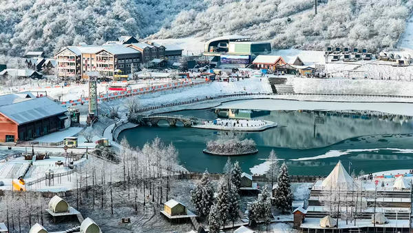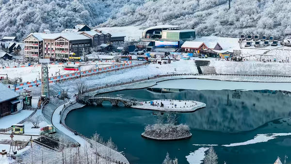 单说明 | 2025年12月27日,大邑县西岭雪山映雪湖,银装素裹冬日里的冰雪童话世界。漫山雾凇裹雪,映雪湖半冰半水,清冽蓝调湖面揉着雪屋与林枝的倒影,吸引游客穿梭其间 —— 冷冽冬色里裹着热络烟火气,是西岭雪山独有的 “冰天里的热闹”。 |