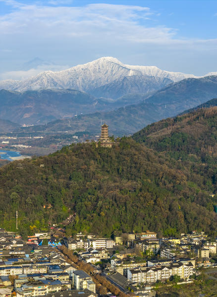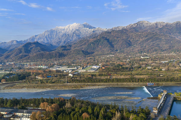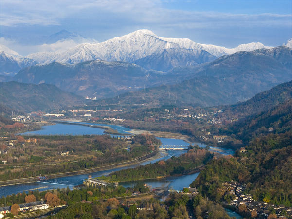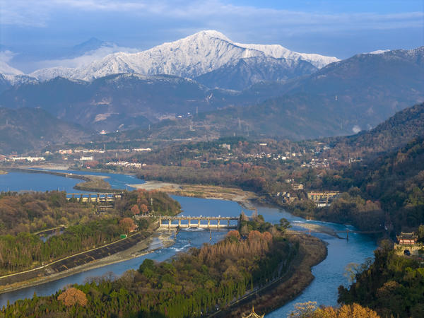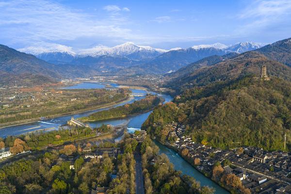 成都都江堰:雪山映照千古堰