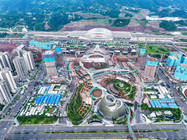 总说明 | 2026年1月5日,四川省宜宾市叙州区高铁南片区。位于宜宾市叙州区境内的渝昆高铁宜宾站是渝昆高铁在四川境内的重要节点,与自宜铁路共用站房。宜宾站于2022年5月28日开工建设,2023年1月15日主体结构封顶,并于2023年12月26日随成宜高速铁路开通运营。2024年9月29日,渝昆高铁川渝段宜宾至重庆动车开通。从开工建设到渝昆高铁川渝段通车,用镜头记录下宜宾站从无到有、不同时间段的建设历程,礼赞“十四五”影像耀天府。 |