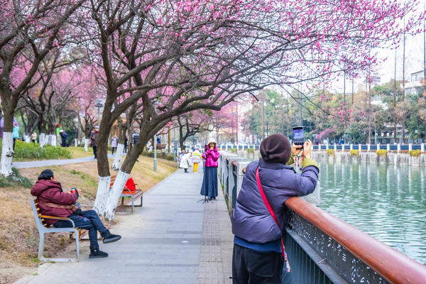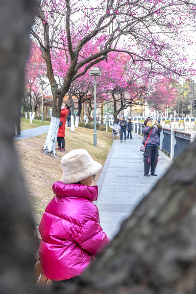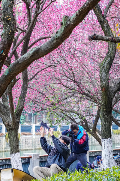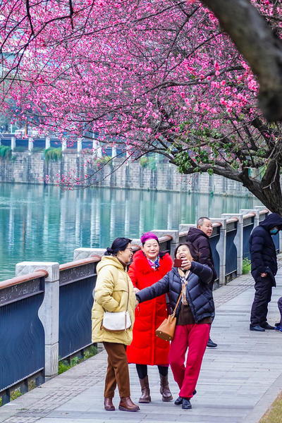 总说明 | 2026年1月21日,成都市武都路府河边,沿岸红梅盛开,把青灰色的桥影、碧绿色的河水都染上了暖意。盛开的红梅引来不少市民观赏,他们举着相机、手机,在花下拍照留影,让这段河湾成了冬季里热闹的“打卡地”。 |
