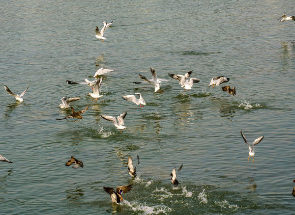 红嘴鸥翩翩起舞。