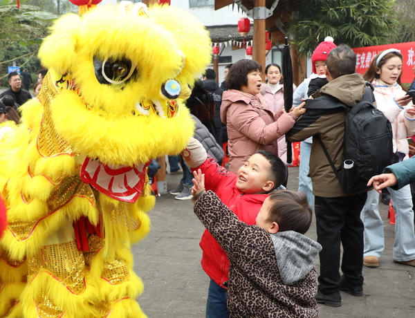 单说明 | 2026年1月24日,游客现场体验摸狮子祈福。 |