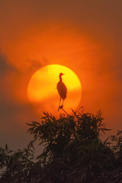 夕光为墨,白鹭是未写完的诗——它以翅尖蘸取最后一道熔金,驮着暮色飞入水墨公园城市。