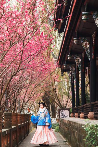 望江楼公园夕阳下的梅花长廊