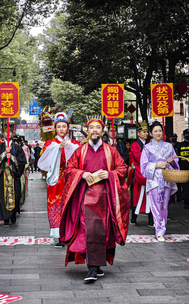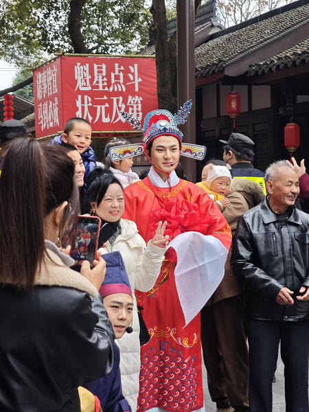 总说明 | 2026年2月17日,大年初一开庙大典晨钟敲响2026成都大庙会,崇州罨画池文庙会开庙。千名游客共迎新年状元巡游、诗画花船、非遗市集轮番登场带你沉浸式体验中国年。状元主题巡游从大成殿出发。状元郎红袍加身、气宇轩昂,带领礼官、侍从、侍卫及学子队伍,更融入了正月民俗中的灶神、财神元素,一路浩浩荡荡穿行于罨画池历史文化街区。这个活动从正月初一到初七。马上到崇州罨画池——在千年园林间静赏文风雅韵,在文庙会的热闹中感受文脉传承与岁月温情,共度一场极具文化底蕴的中国年!(郭迎伟2026年正月初二到初三拍摄于崇州市孔子广场、正东街、罨画池公园) |
