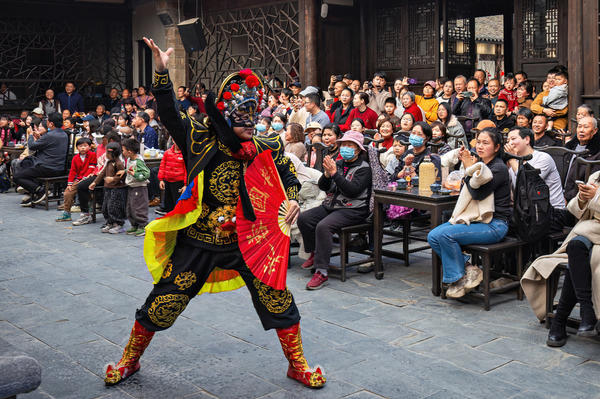 2026年2月15日至22日,成都市青白江区城厢古城轮番上演传统经典川剧,让市民和游客大饱眼福,在浓浓的文化浸润中欢度马年新春。