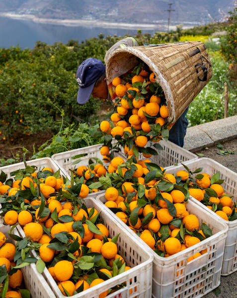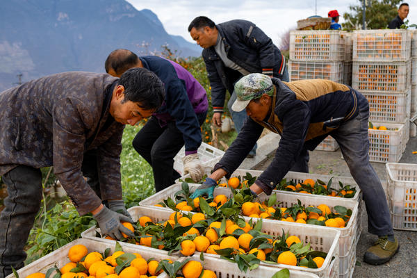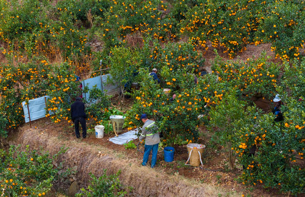 2026年2月28日,四川省雅安市汉源县富林镇,黄果柑采摘上市。