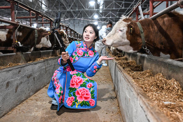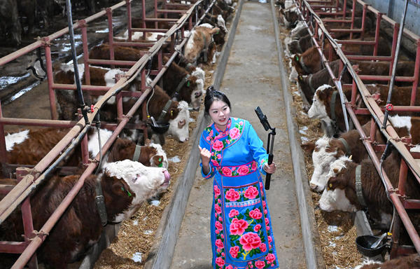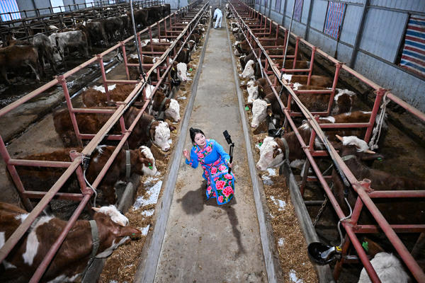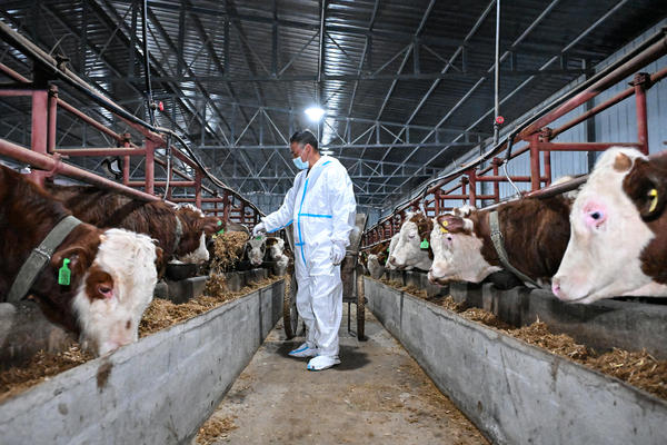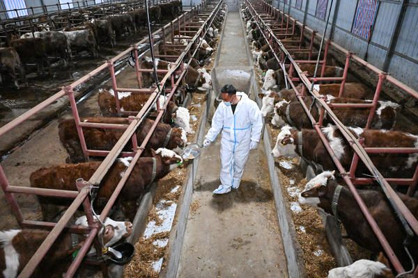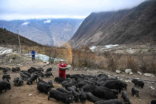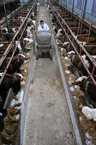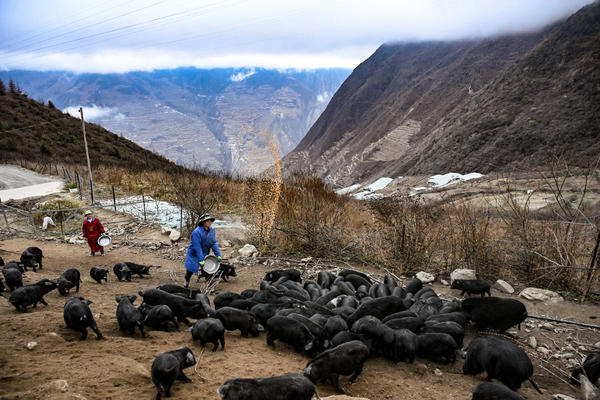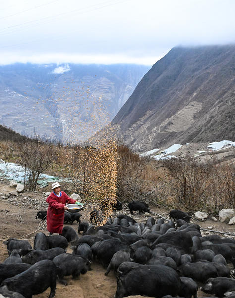单说明 | 2026年3月13日,在四川省阿坝州汶川县灞州镇周达村,当地村民正在喂牛。 |