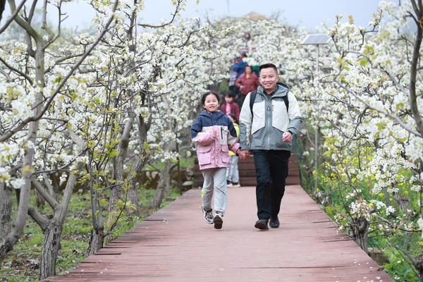 单说明 | 3月15日,游客在成都市彭州市葛仙山镇熙玉村的梨园赏花游玩。 |